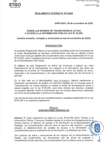 REGLAMENTO N°971- 2025, Sobre Normas de Transparencia Activa y Acceso a la Información Pública Ley N°20.285